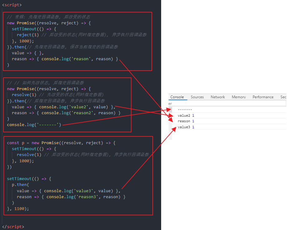 3.改变promise状态和指定回调函数谁先谁后?