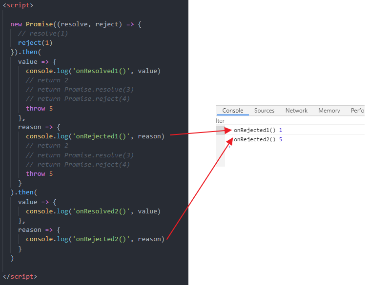 说明: then()的语法糖, 相当于: then(undefined, onRejected)