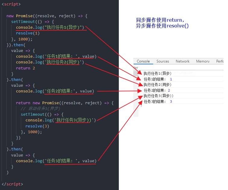 (2) 通过then的链式调用串连多个同步/异步任务