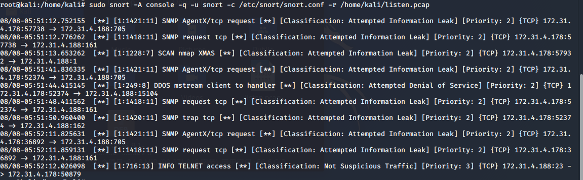 2.3.3.通过snort扫描可以确定是进行的nmap攻击,nmap扫描前通过arp确定目标的mac地址