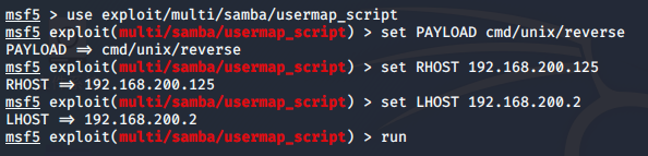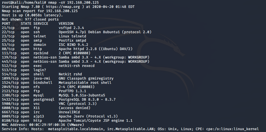 双方IP地址:攻击机kali:192.168.200.2 , 靶机Metasploitable:192.168.200.125