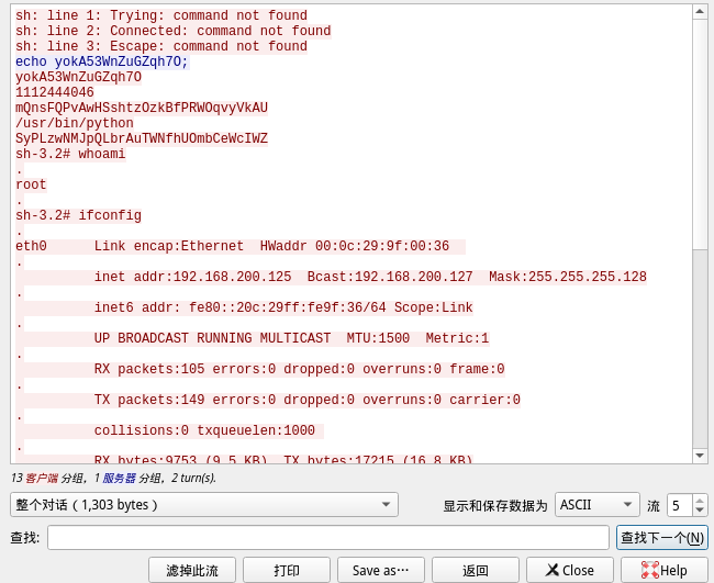 分析wireshark的流量,可以发现攻击方的ip地址为192.168.200.2.攻击连接的端口是8787。