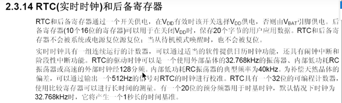 RTC和后备寄存器由备用电源(如纽扣电池)供电(在断电后),(后备用来)保存动态数据。不会因为系统复位和低功耗复位而复位。