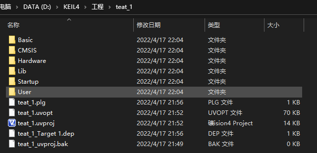 keil4中创建的工程也保存在这里
