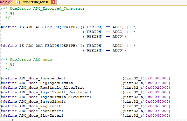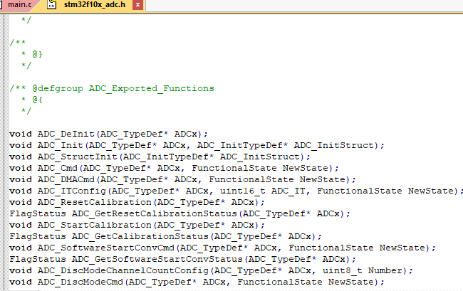 adc所涉及的库函数的申明,即main。c 是 由这种。h文件 和 其他库文件之间 联系起来的