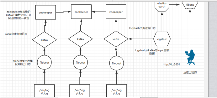 enabled: true #开启 paths: - /var/log/ 例如:messages 添加 : output.kafka: enbled: true #开启 hosts: ["192.168.253.225:9092","192.168.253.231","192.168.253.232"] 三台主机ip topic: messages