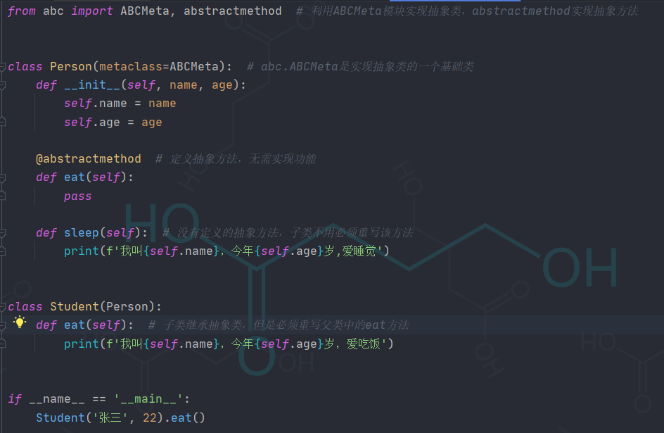 抽象方法可以不用实现具体的方法逻辑,但是在继承的子类中需要对继承的方法重写具体的实现逻辑