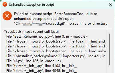记一次pyinstall打包遇到的问题:资源文件路径不存在('D:PythonProject/xxxxxxxxx/dist/src/add.gif': no such file or directory)