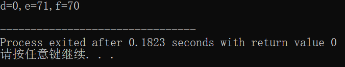 从理论上分析,变量d的值是0,e的值是71,f的值是70