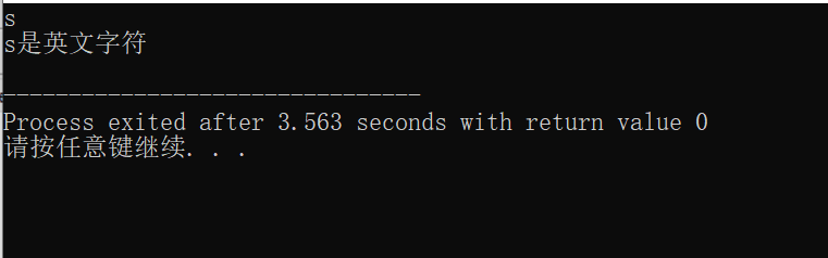 #include<stdio.h> int main(){ char x; x=getchar(); if(x>='0'&&x<='9') printf("%c是数字字符\n",x); else if(x>='a'&&x<='z'||x>='A'&&x<='Z') printf("%c是英文字符\n",x); else printf("%c是其它字符\n",x); return 0; }