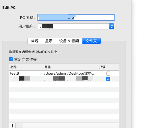 3、打开microsoft remote desktop ,进入edit ,选择 local resource,勾选folers,点击“+” 添加mac 本地的文件夹,点击save