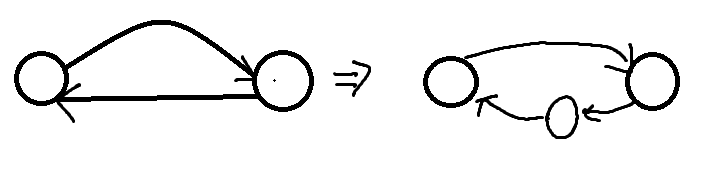假如存在反向边,可以通过如下操作将图变为不存在反向边的图,从而简化问题。