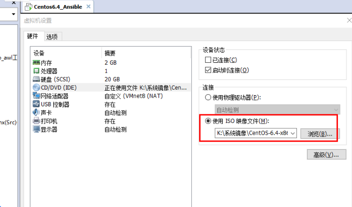 将系统的原版安装镜像连接上,相当于在实体机上 将镜像盘 插入机器中