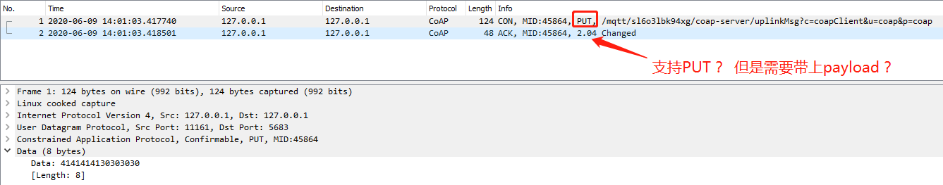 2、正常CoAP协议请求数据应该是payload在GET订阅设备资源后,设备主动上报的NON/CON消息中携带,但emqx-coap插件需要在PUT请求中携带payload,订阅端就能拿到这部分数据,这样其实是跟目前国内的物联网市场使用的华为海思芯片是不兼容的,这样理解不知是否正确,还请有这方面经验的大佬,不吝赐教!