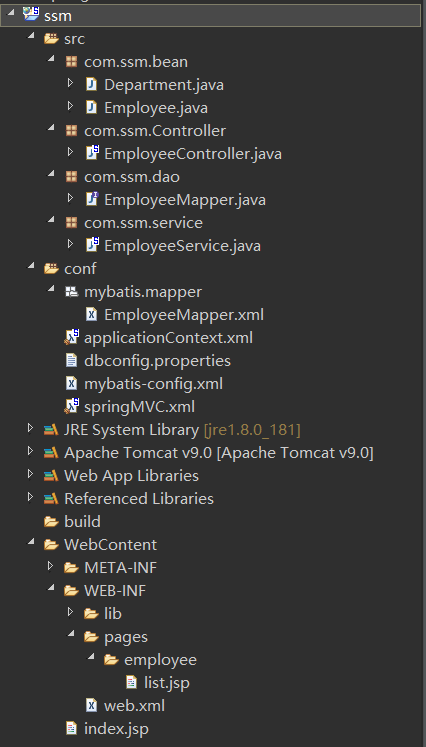 <?xml version="1.0" encoding="UTF-8" ?> <!DOCTYPE mapper PUBLIC "-//mybatis.org//DTD Mapper 3.0//EN" "http://mybatis.org/dtd/mybatis-3-mapper.dtd"> <mapper namespace="com.ssm.dao.EmployeeMapper"> <select id="getEmployees" resultType="com.ssm.bean.Employee"> select * from employee </select> </mapper>