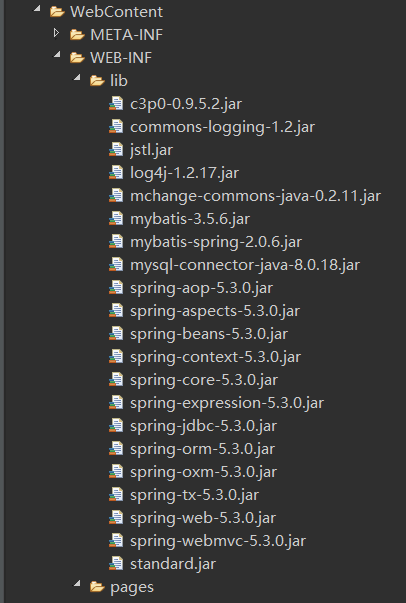 简介: 整合SSM, 用到的技术Spirng5.3, MyBatis3.5.6, C3P0 0.9.5.2(连接池), Jstl,Jdbc8.0.18,Junit5(单元测试), log4j(mybatis项目配置log4j打印sql语句 )
