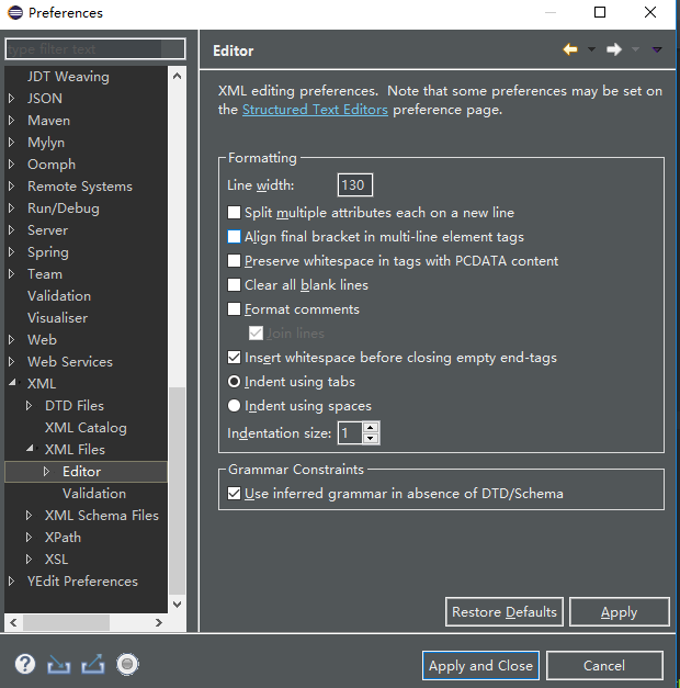 Eclipse Xml 注释不格式化和其它设置
