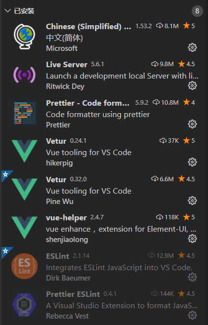 { "editor.detectIndentation": false, // 改为false,这里默认是true "vetur.format.options.tabSize": 4, // tab 大小为4个空格 // 强制单引号 "prettier.singleQuote": true, // 尽可能控制尾随逗号的打印 "prettier.trailingComma": "all", // 开启 eslint 支持 "prettier.eslintIntegration": true, // 保存时自动fix // "eslint.autoFixOnSave": true, // 添加 vue 支持 // "eslint.validate": [ // "javascript", // "javascriptreact", // { // "language": "vue", // "autoFix": true // } // ], // 使用插件格式化 html "vetur.format.defaultFormatter.html": "js-beautify-html", // 格式化插件的配置 "vetur.format.defaultFormatterOptions": { "js-beautify-html": { // 属性强制折行对齐 "wrap_attributes": "force-aligned" } }, // "vetur.format.defaultFormatter": { // "html": "prettier", // "css": "prettier", // "postcss": "prettier", // "scss": "prettier", // "less": "prettier", // "js": "prettier", // "ts": "prettier", // "stylus": "stylus-supremacy" // }, // html颜色高亮 "files.associations": { ".eslintrc": "json", "*.vue": "html" }, "emmet.syntaxProfiles": { "javascript": "jsx", "vue": "html", "vue-html": "html" }, "[html]": { "editor.defaultFormatter": "vscode.html-language-features" }, "editor.codeActionsOnSave": { "source.fixAll.eslint": true }, "[jsonc]": { "editor.defaultFormatter": "vscode.json-language-features" }, "[javascript]": { "editor.defaultFormatter": "vscode.typescript-language-features" }, }