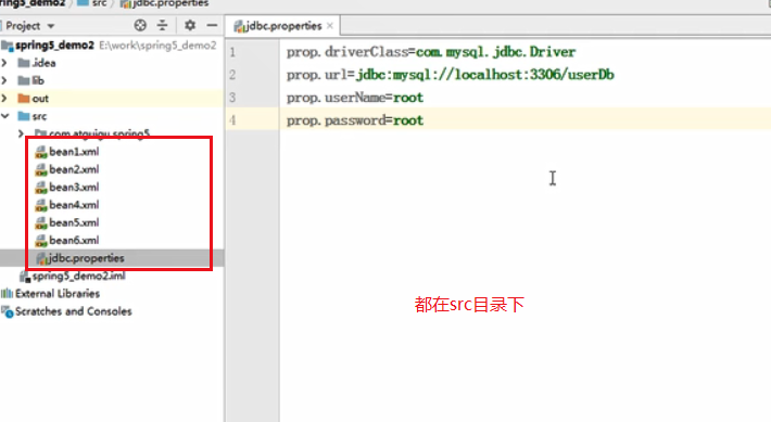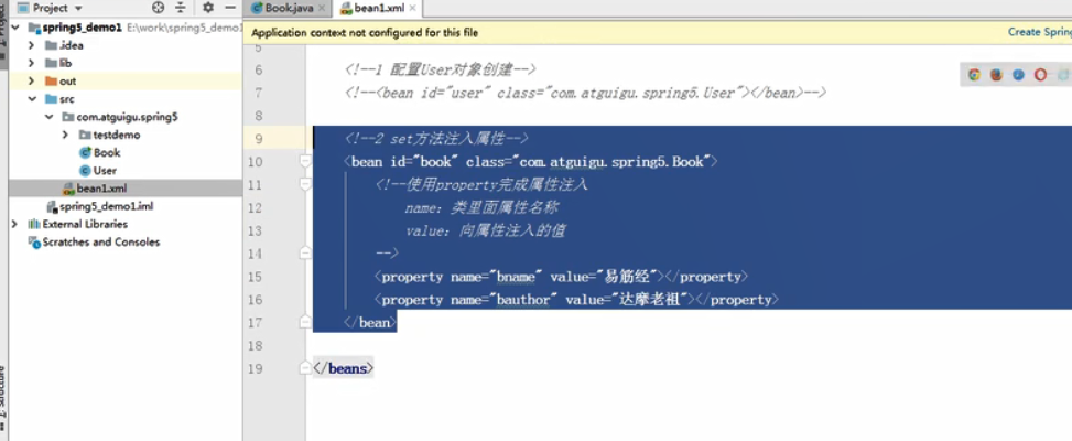 2先编写user类 然后导入jar包,然后创建xml文件(会自动检测出是spring的xml)