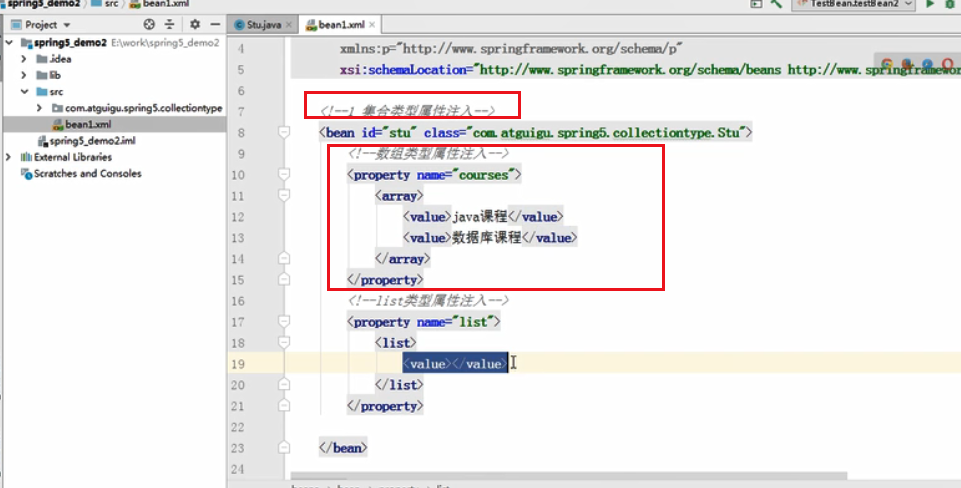 注入集合类型的属性