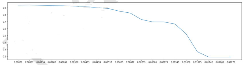0.00134之前,模型的效果都可以维持在0.93以上,因此我们可以从中挑选一个数值来验证一下模型的效果