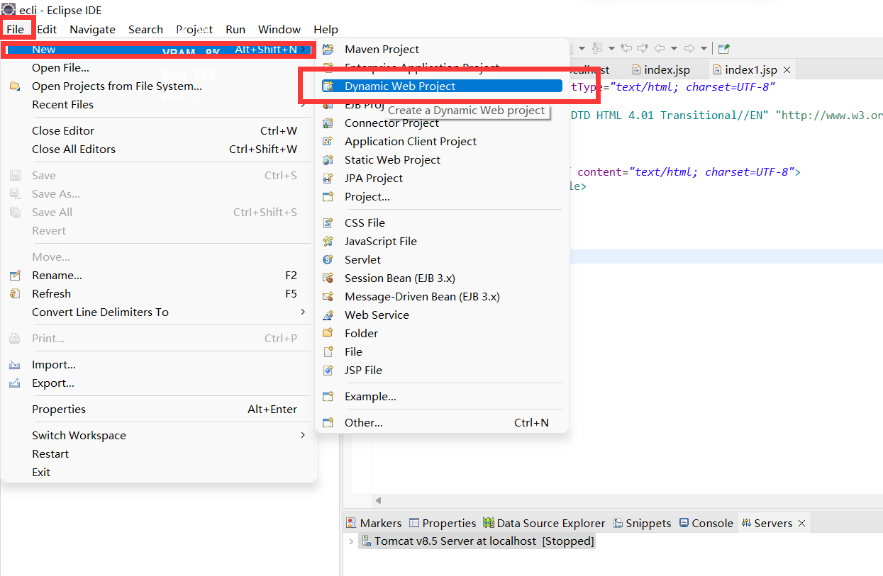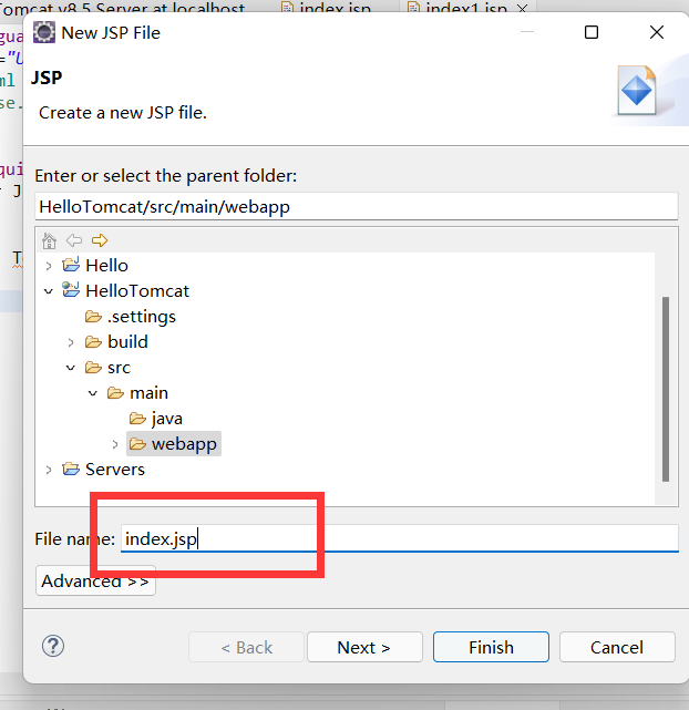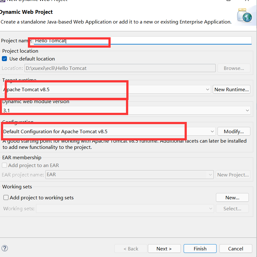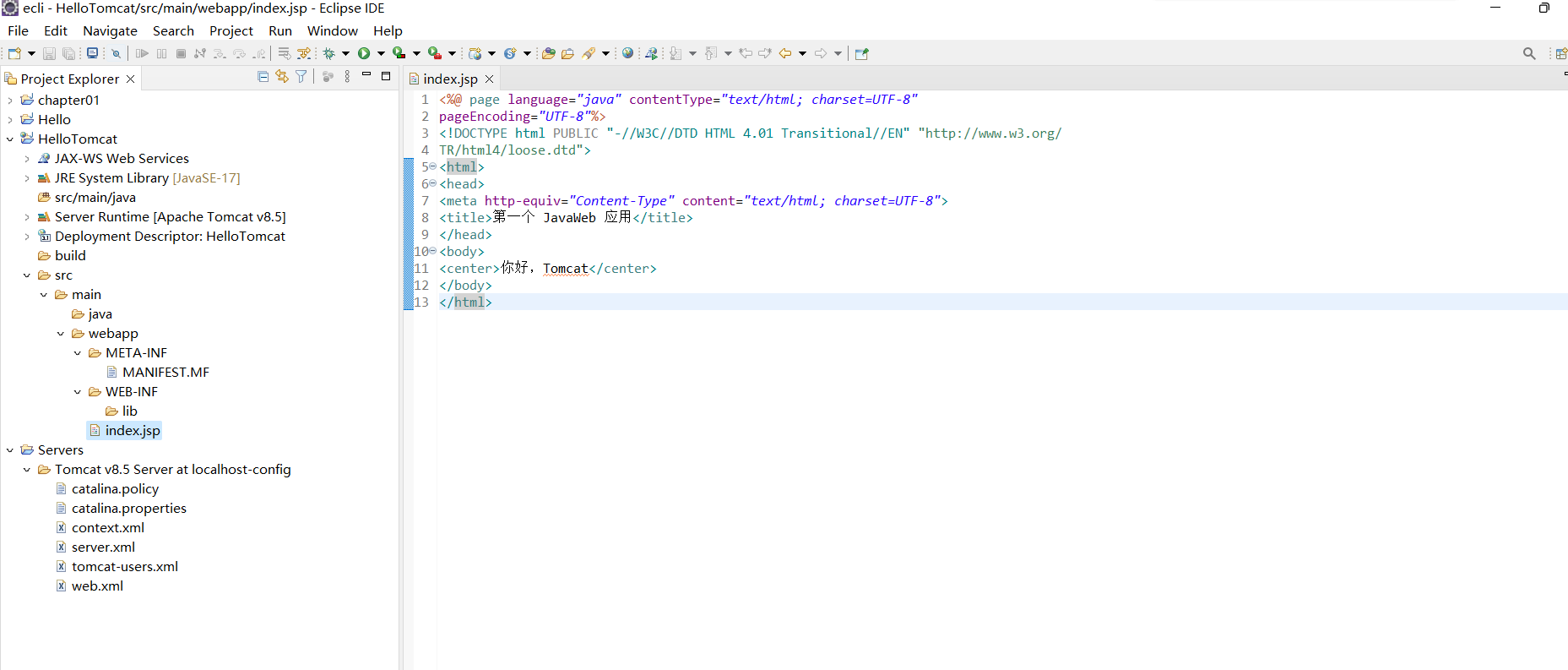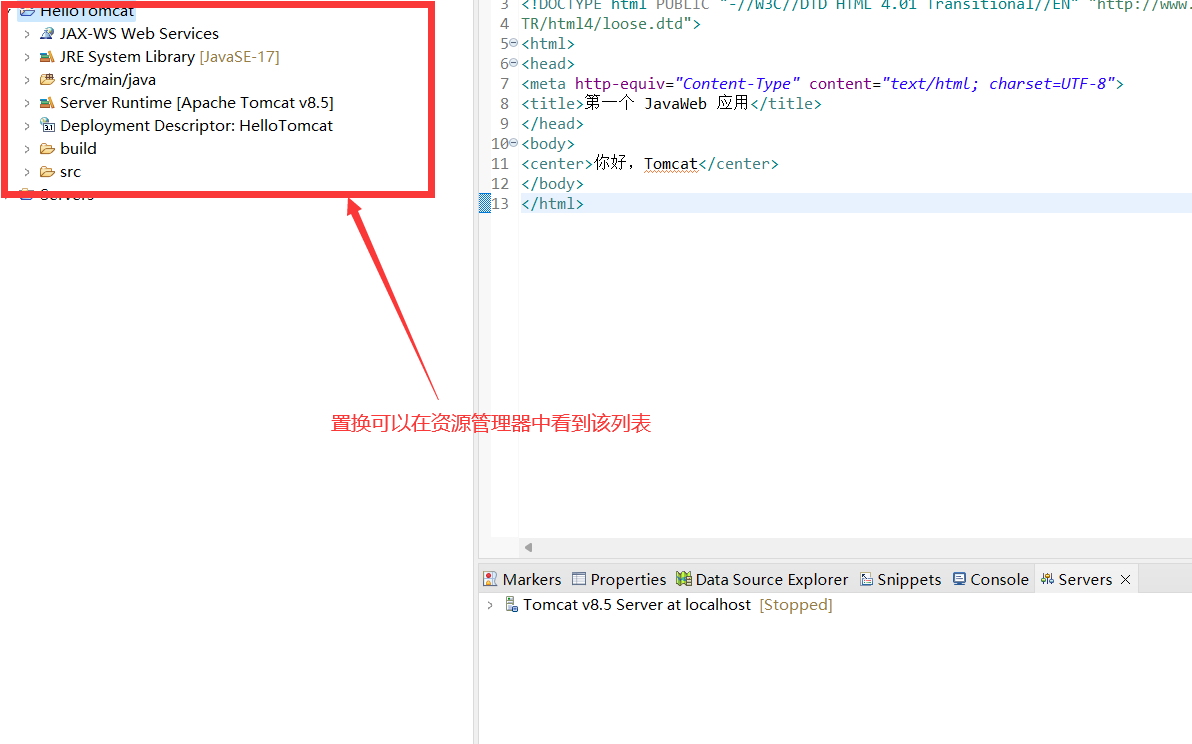 在eclipse中创建HelloTomcat项目: