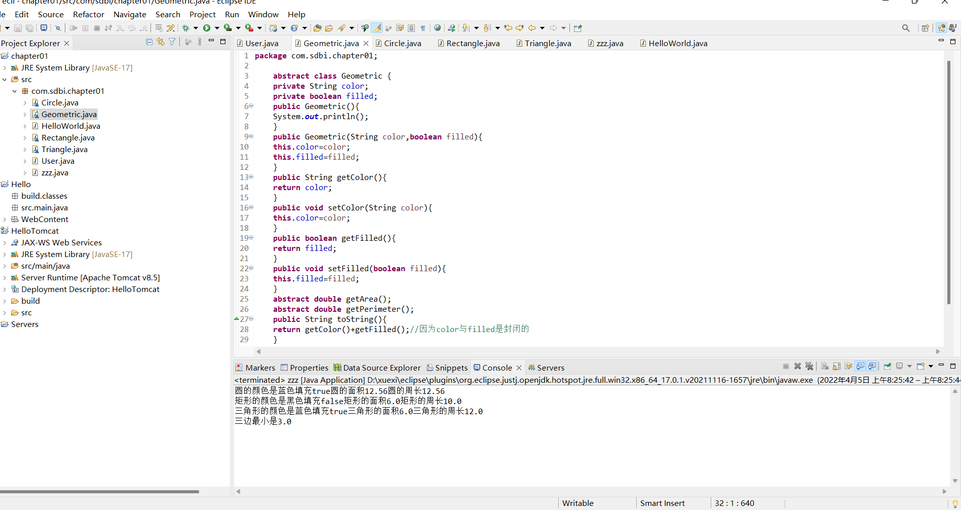 ⑥一个名为toString()的方法,返回该几何图形的字符串描述。