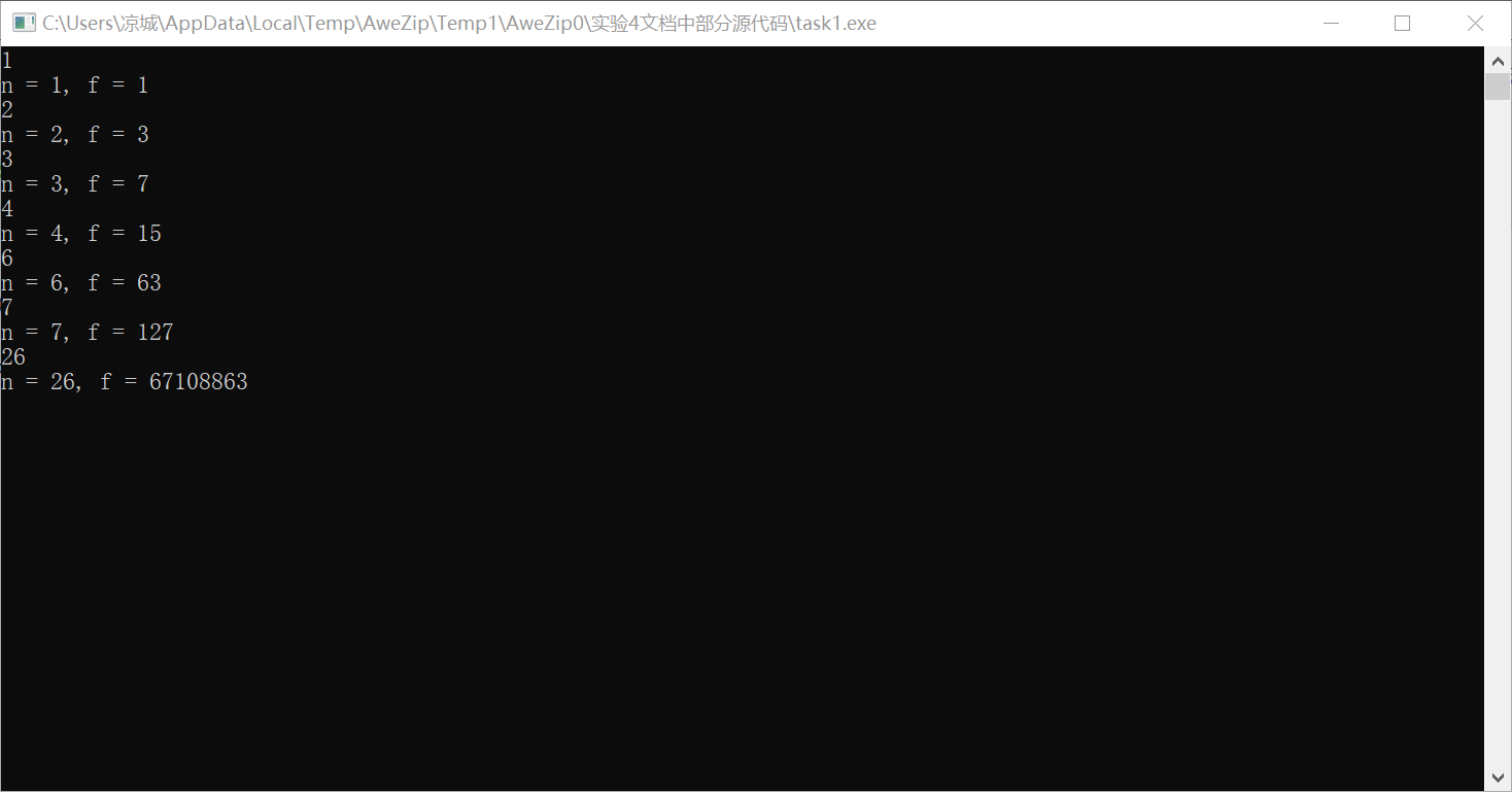 printf("n = %d, f = %lld\n", n, f);