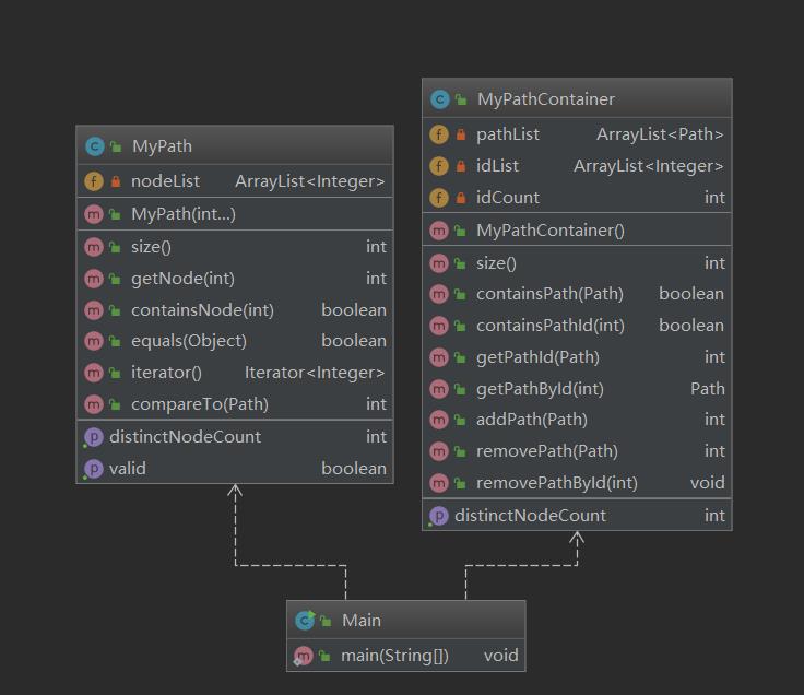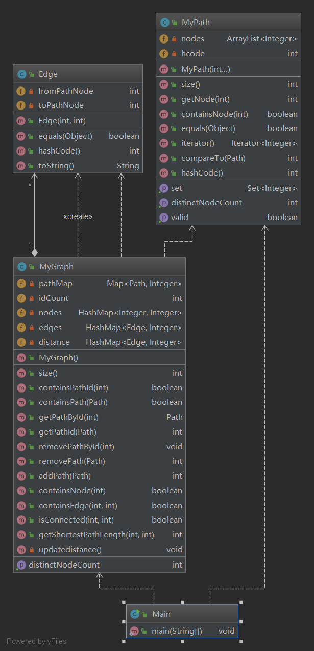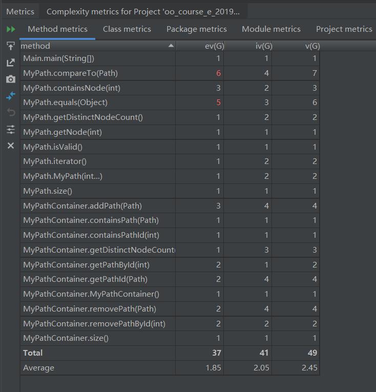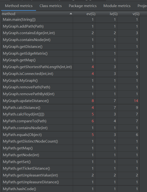 本次作业要求新增一个Graph类,并实现最短路径算法。本次代码使用hashmap存储。每个相同的边记录次数,当边彻底被删光(次数为0)时更新整个图的节点和最短路径(Floyd算法)。度量信息如下