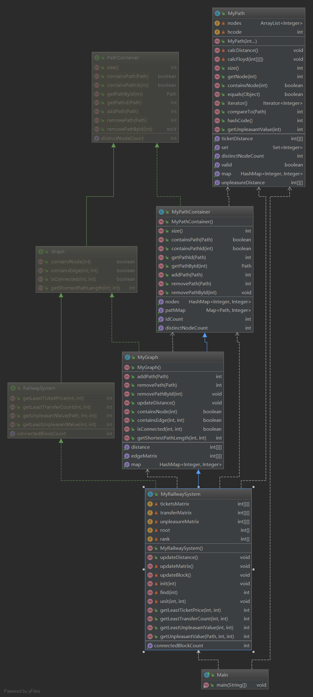 三次作业还是次次重构,hhh。并不是因为重构爽,是因为前两次代码都有bug,并且设计的有些混乱所以必须得重构,唉。第一次作业是因为掉以轻心,以为这次作业就是练习写规格,没有考虑时间复杂度的问题。导致每次在算节点个数的时候都是暴力搜索。。。第二次作业虽然考虑了时间复杂度,但是在设计的时候还是存在了bug,在存储边的时候我并没有按照邻接矩阵的方法存储,而是对边进行hashmap存储,然而边的个数实在是太多,所以实际上时间复杂度并没有降下来,总之设计的确实有点问题。最后一次作业终于AC了,也就没什么可分析的了。就是先计算每个直达图的最短路径之后在整合所有边计算整体的最短路径。