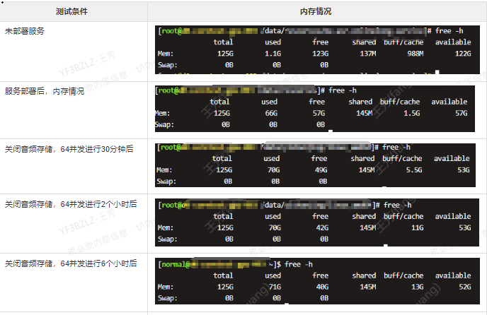 1.对于 free 的 cache 异常,以前没有涉猎,查询资料,cache 作为page cache的内存数量,一般作为文件系统的cache,如果cache较大,说明用到cache的文件较多。我的服务主要负责网络通信,内核计算会用到文件资源,因此怀疑是内核打开过多文件导致cache上涨,但测试反馈老服务使用同一资源没有该问题,由此分析,应该跟内核没有关系,可能是我服务错误使用了内核导致的。