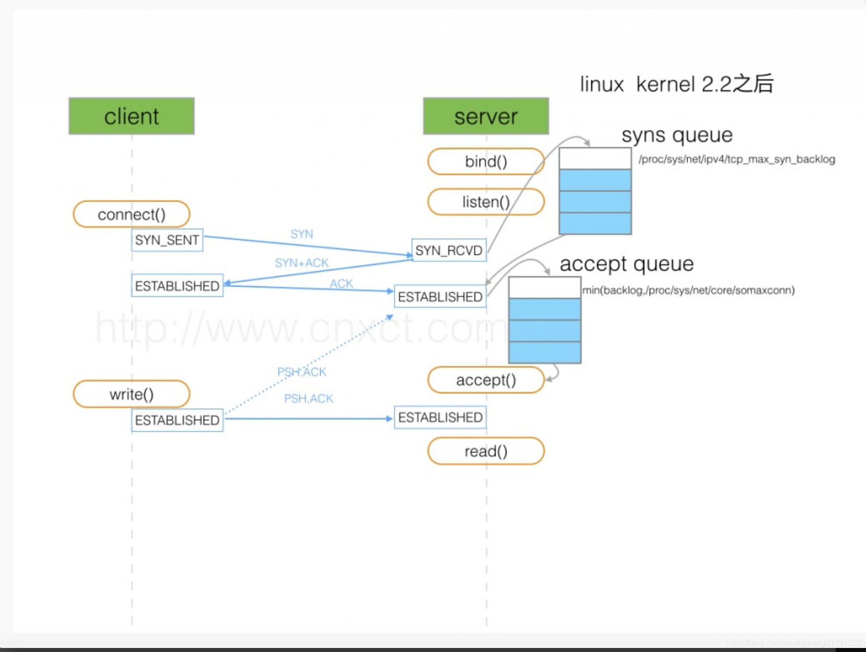 表示最多有129个ESTABLISHED连接等待服务端 accept,而 backlog 的值则由 int listen(int sockfd, int backlog) 中的第二个参数指定
