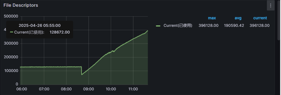 IO下降?读阻塞?继续观察系统文件相关信息,发现文件描述符的增长有异常,