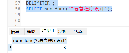 DELIMITER ; SELECT num_func('C语言程序设计');