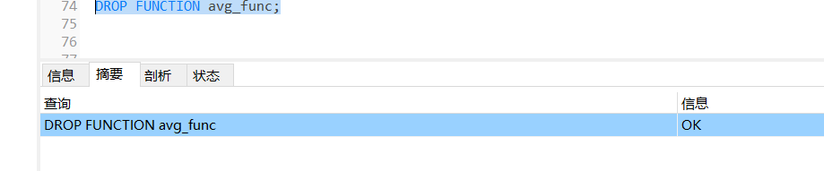 (2)执行存储函数avg_func,查看“C语言程序设计”课程平均分。