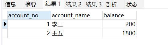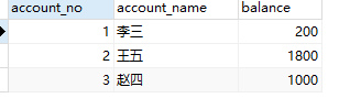 【例6-2】假设银行存在两个借记卡账户(account)李三与‘王五,要求这两个借记卡账户不能用于透支,即两个账户的余额 (balance) 不能小于0。创建存储过程tran procO, 实现两个账户的转账业务。