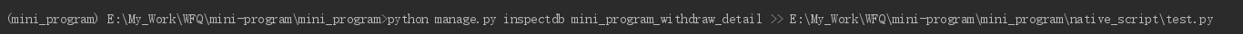 python manage.py inspectdb mini_program_withdraw_detail >> E:\My_Work\WFQ\mini-program\mini_program\native_script\test.py