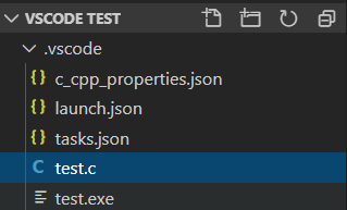 在我们的vscode test文件夹下自动新建了.vscode文件夹,并出现了三个文件: