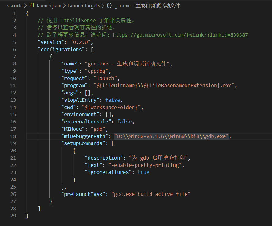 打开launch.json,修改gdb.exe的路径: