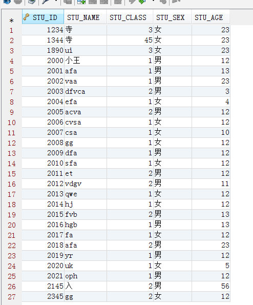 然后这是插入的一些数据: