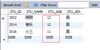 insert into STUDENT values(2012,'冰冰',14,'女');