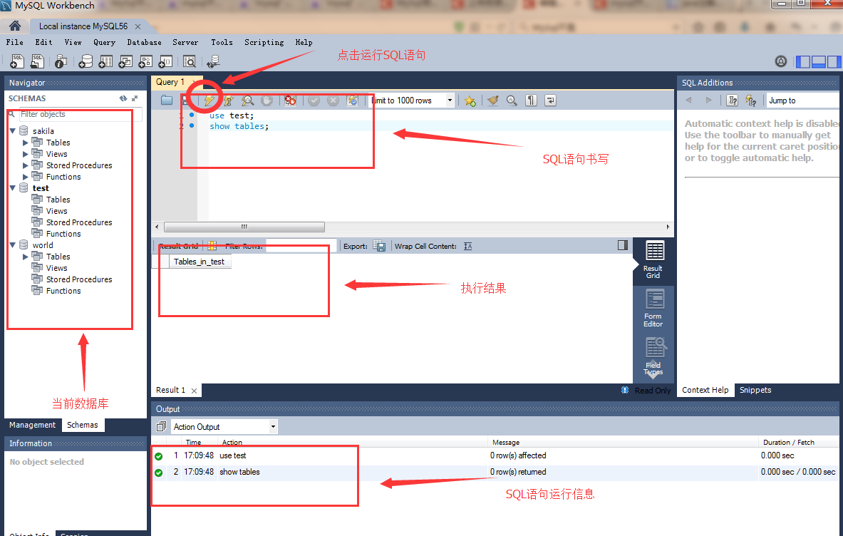 用这种黑框框来写语句很不方便,这里我介绍两个客户端工具,可以直接写sql语句,看数据库等