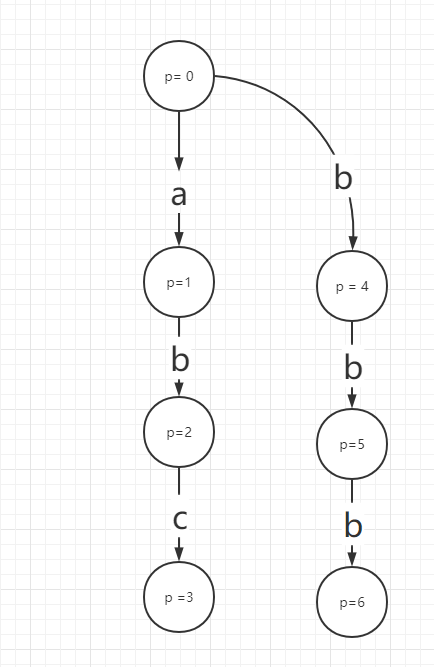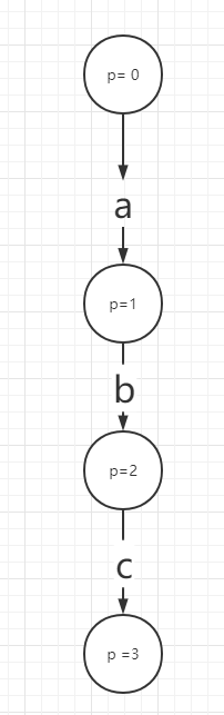 依次类推,当添加完'c',我们在 p= 3这个节点处标记一下,这是一个字符串的结尾。