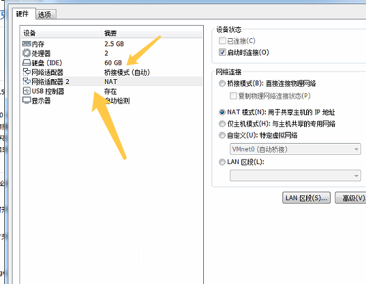 添加完成后,虚拟机2(即克隆的第一个虚拟机)编辑如下会有两个网络适配器