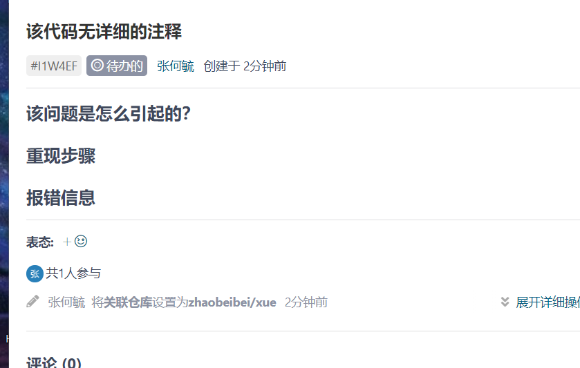 | 作业目标 | <在码云仓库上对其他同学的代码进行审查,并通过 Issue 提出问题,针对自己的代码仓库中收到的 Issue 进行回复,并进行必要的修改> |