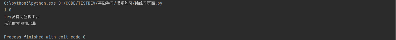 # 这个过程叫捕获异常, 不管有什么异常都用这个捕获,如果是2个捕获与优先执行第一个,第二个不执行