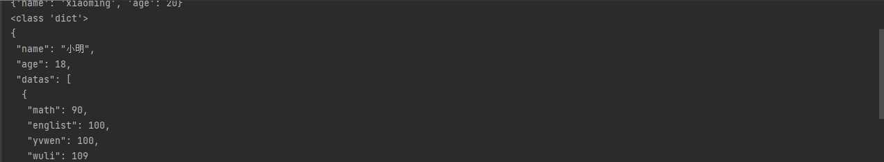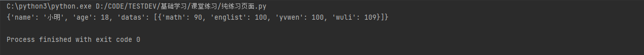 dict1={'name':'小明','age':18,'datas':[{'math':90,'englist':100,'yvwen':100,'wuli':109}]}