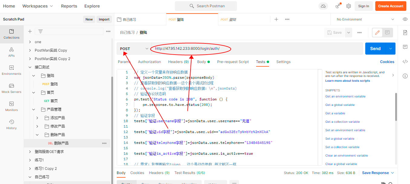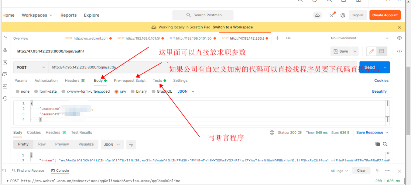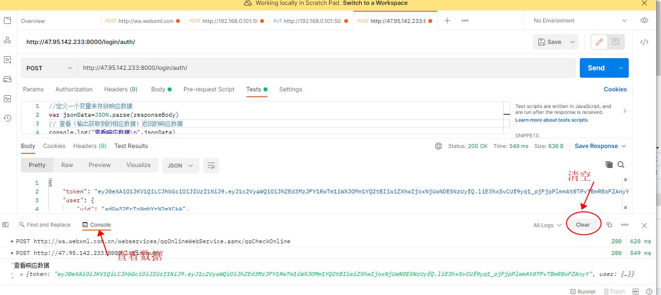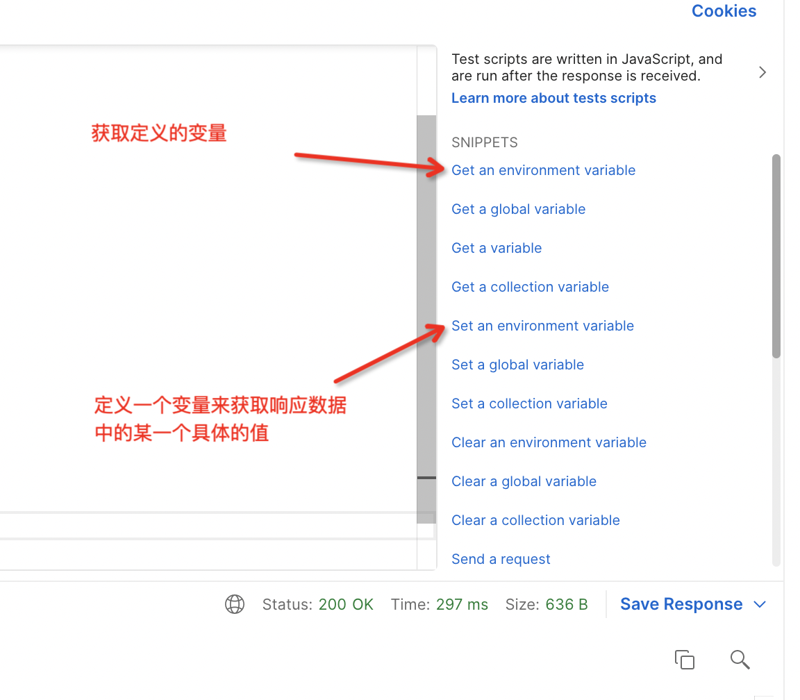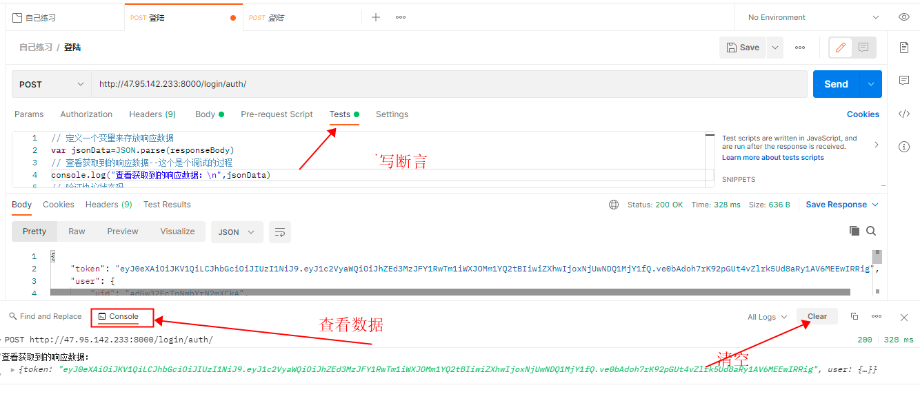 1、登陆成功后,在登陆接口的tests中定义一个变量在获取响应数据中的动态参数token