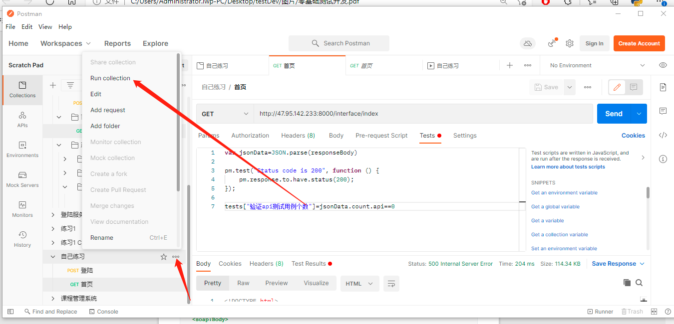 3、那么这个过程中,需要把登陆接口和引用登陆接口的变量的接口都需要添加到Collection中,它的顺序是登陆接口在前